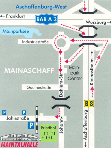 - Mainaschaff, links in die Johann-Dahlem-Straße einbiegen,